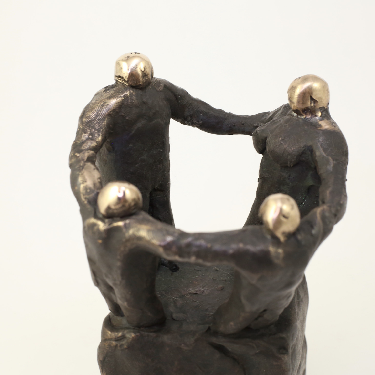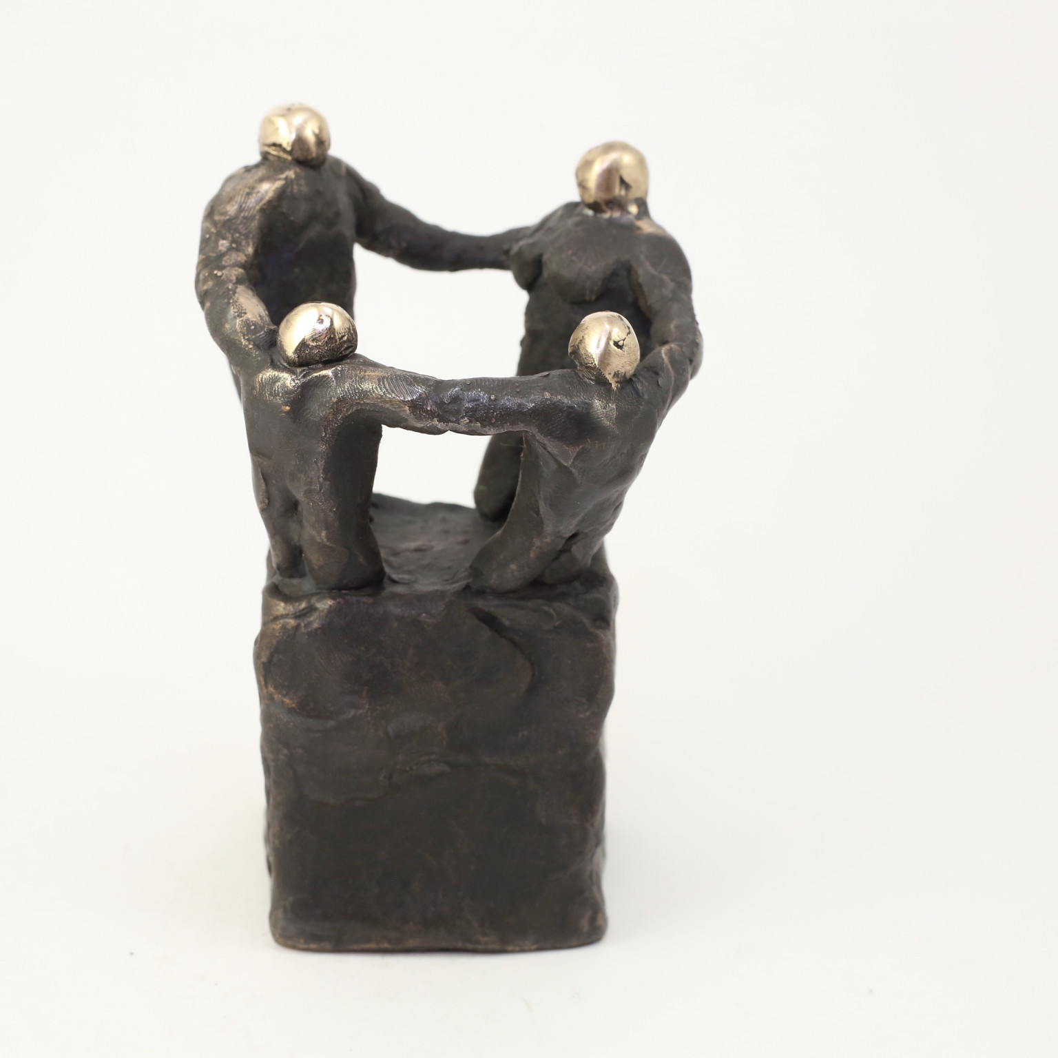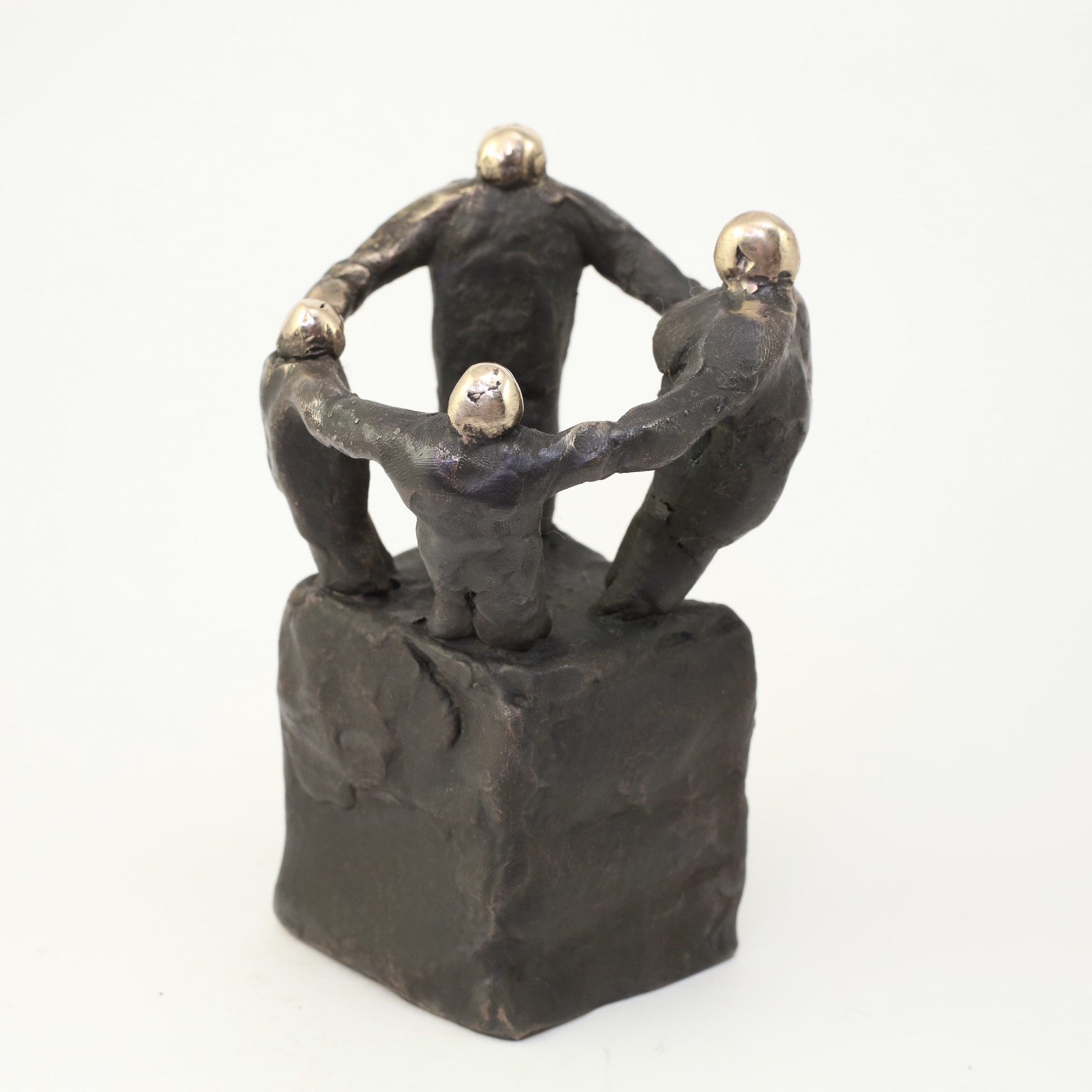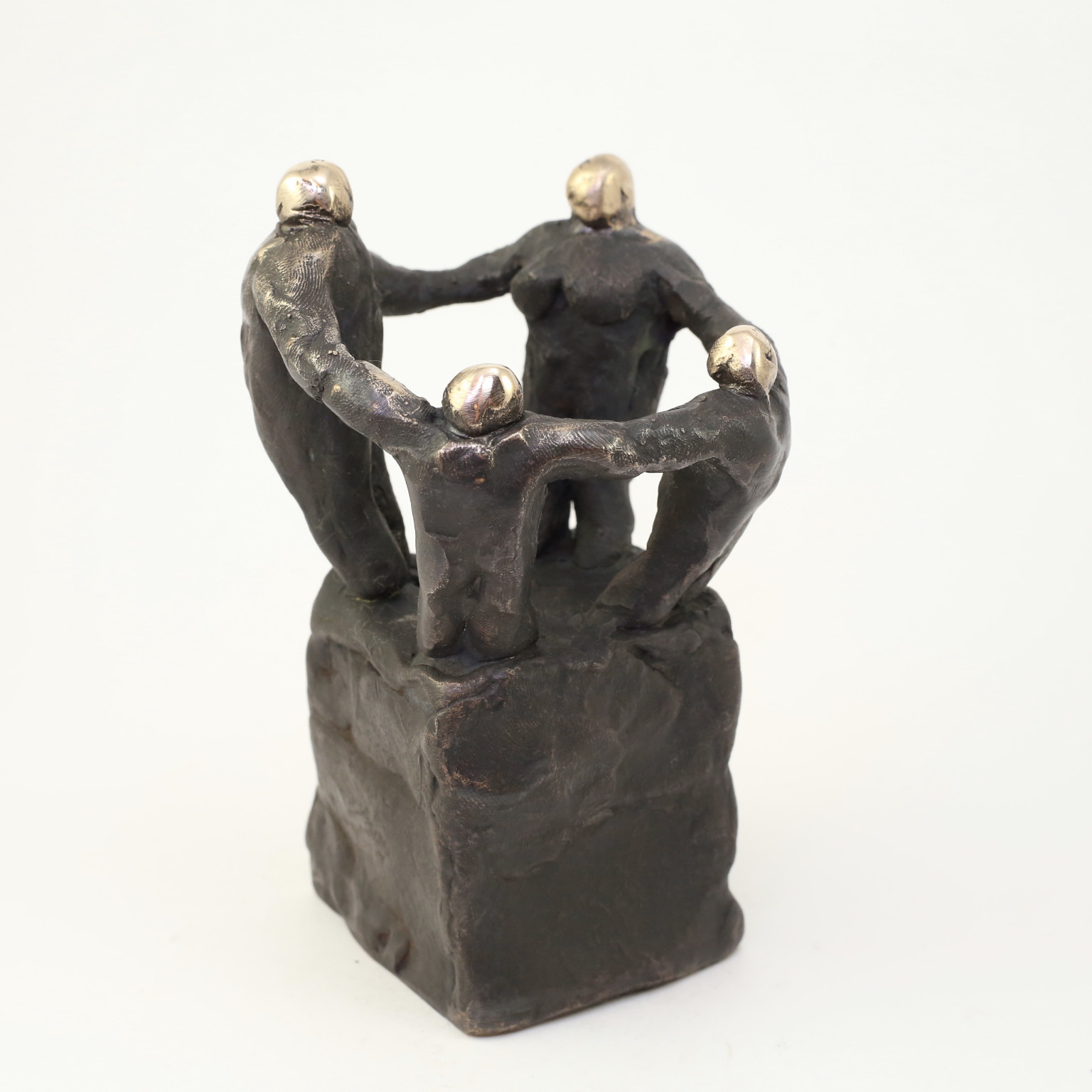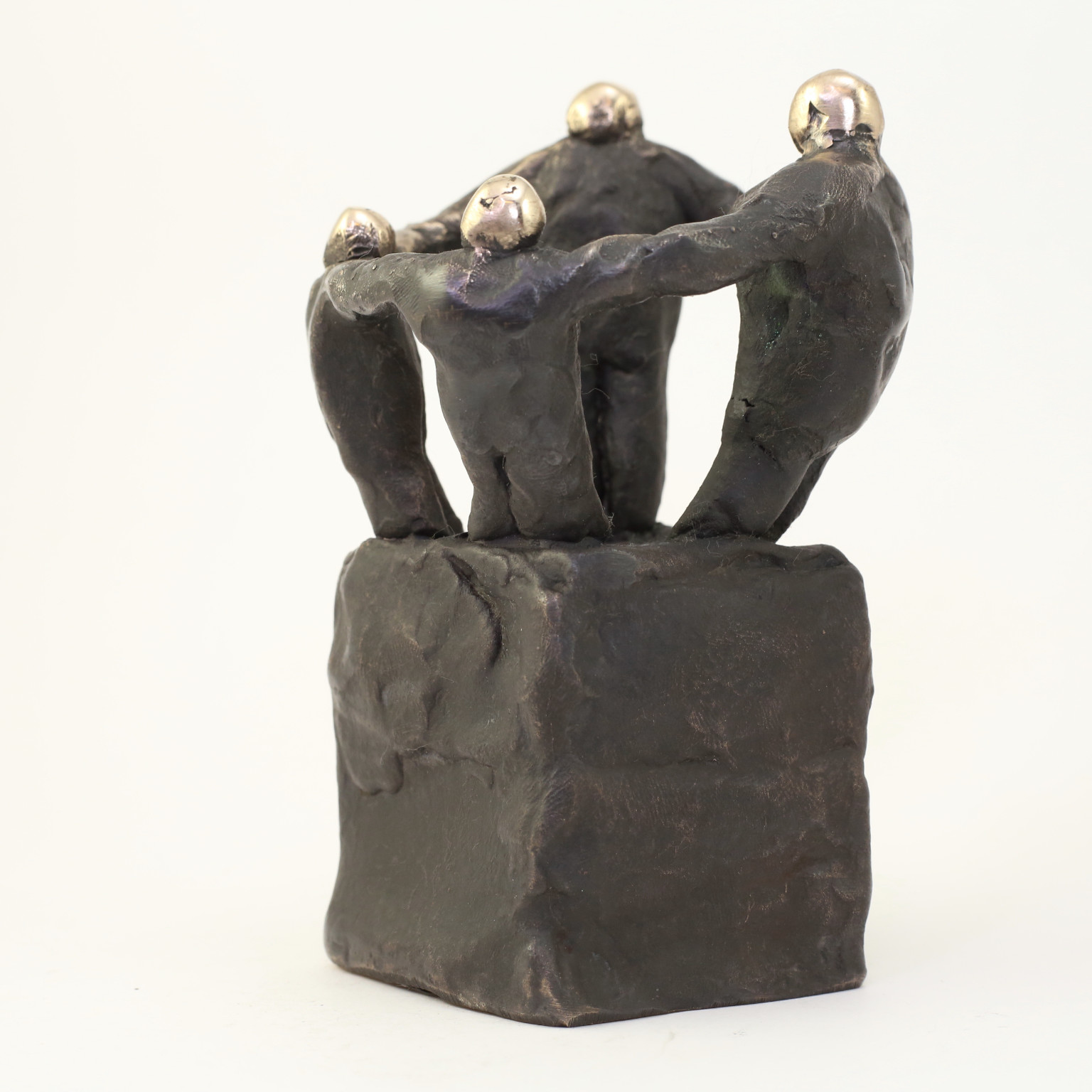 Skulpturen er udført i oxideret bronze. Toppen af skulpturen er blankpoleret for at skabe kontrast.