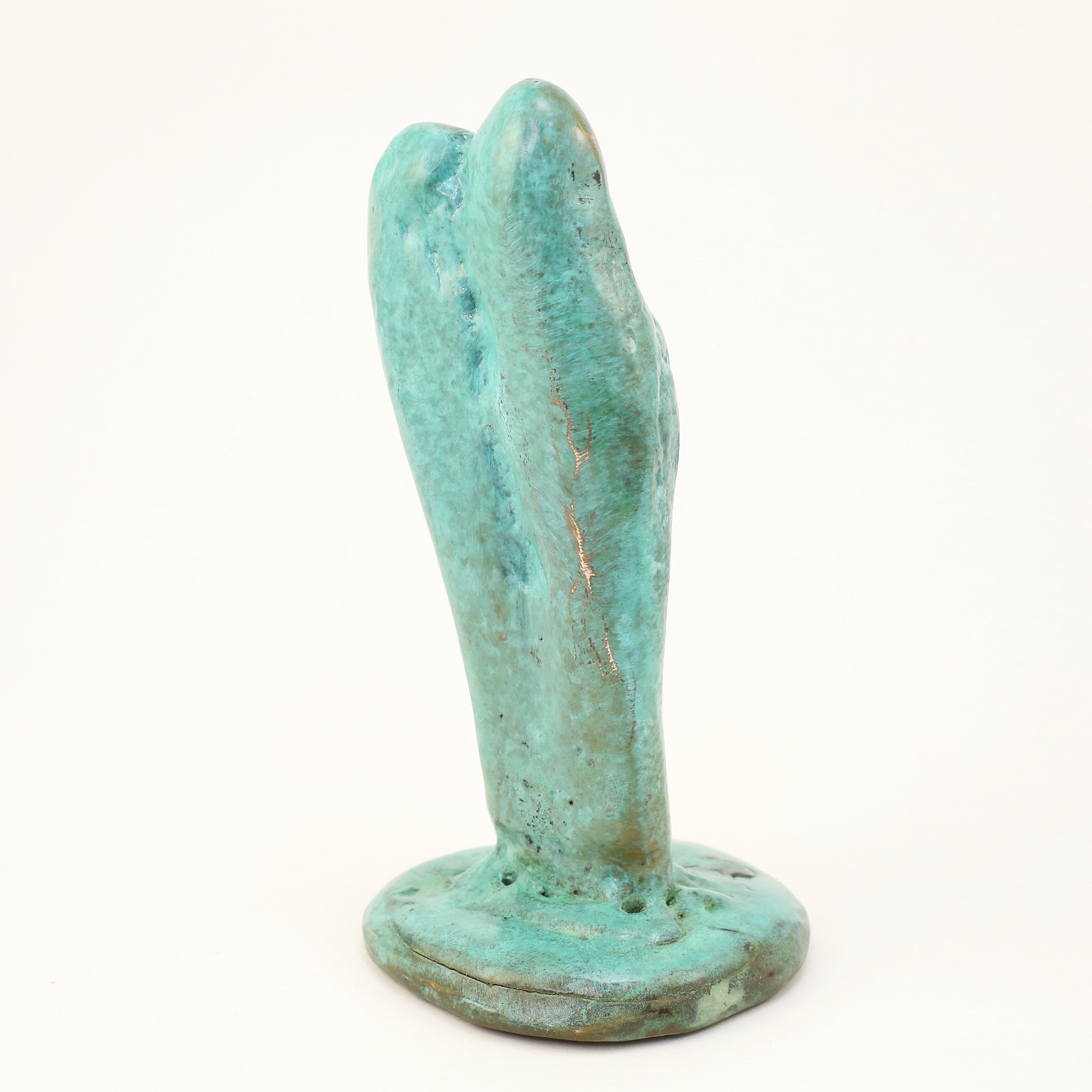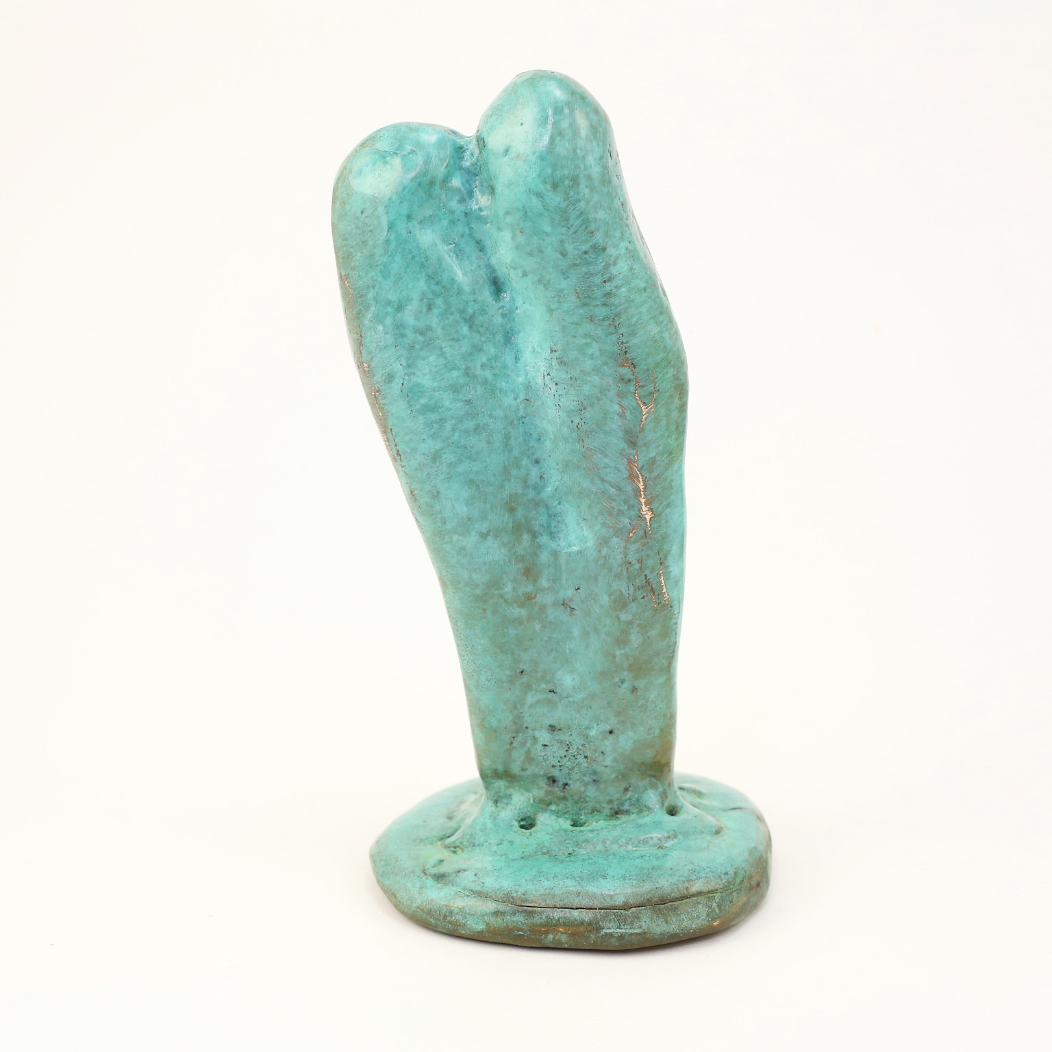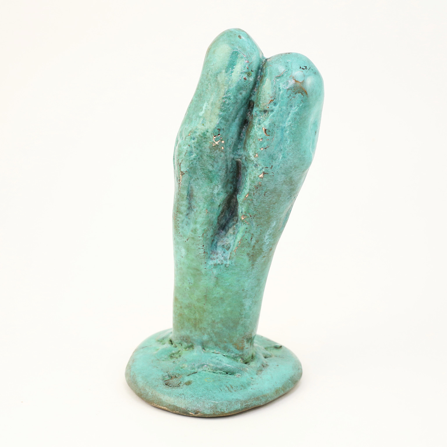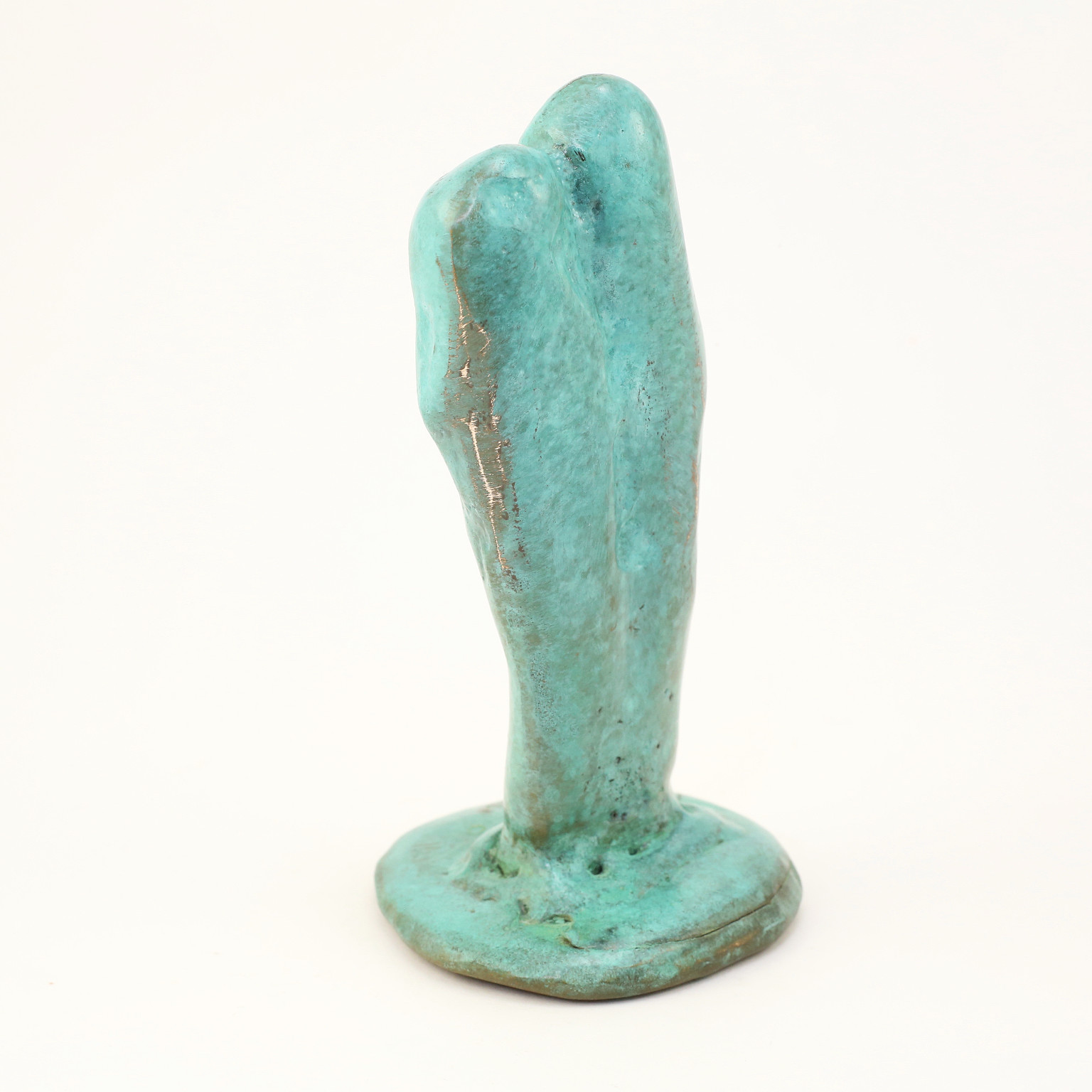 Forbundet er en abstrakt bronzeskulptur, der viser to skikkelser, som vokser tæt sammen fra samme stamme. Figuren er udført med en organisk overflade, der fremhæver værkets levende udtryk. Patineringen i grønne nuancer giver dybde og spil, mens formen fortæller historien om samhørighed og nærvær. Skulpturen udtrykker relationens styrke i et enkelt og poetisk formsprog.