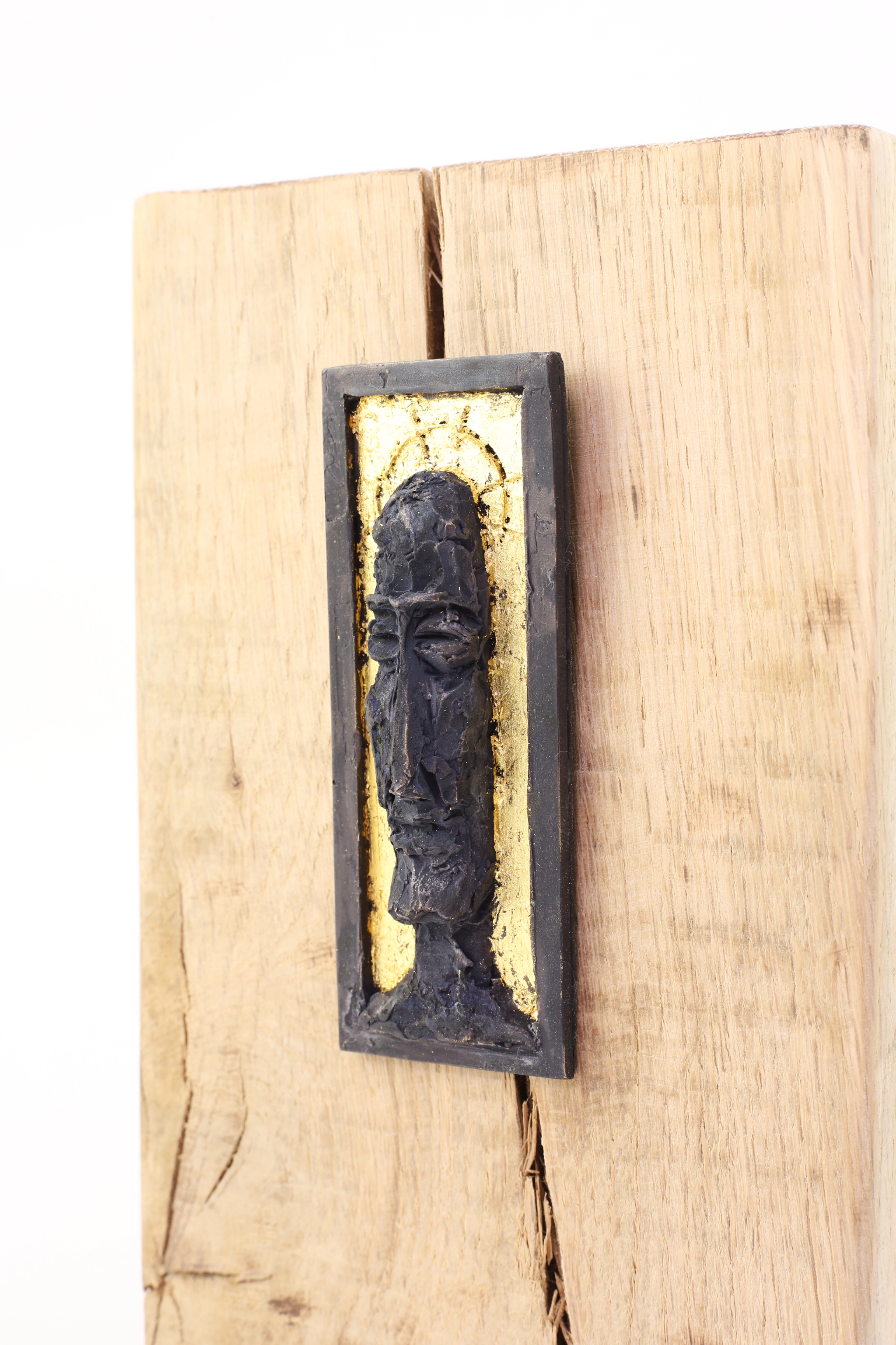 Bronzeansigt i relief med 24 karat bladguld