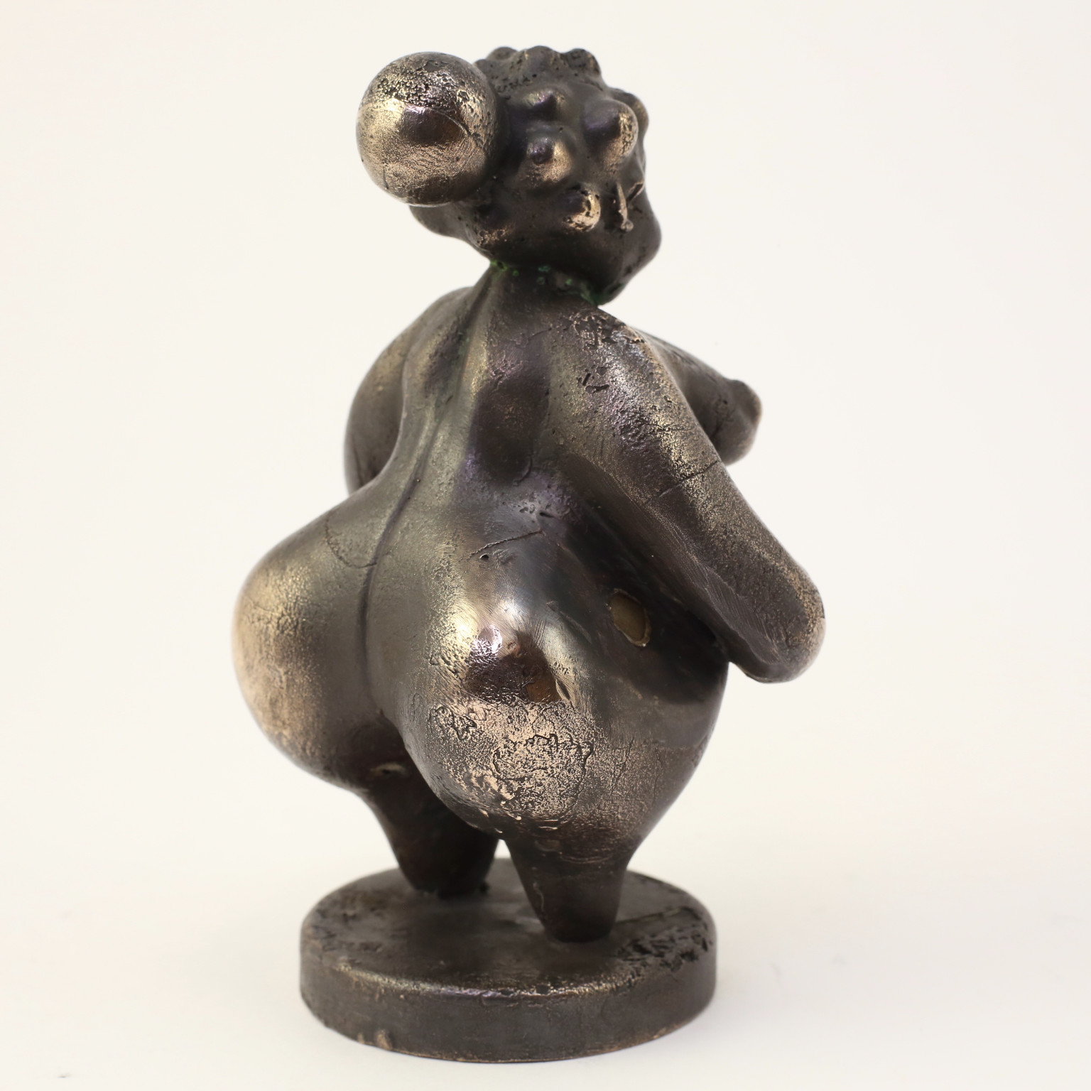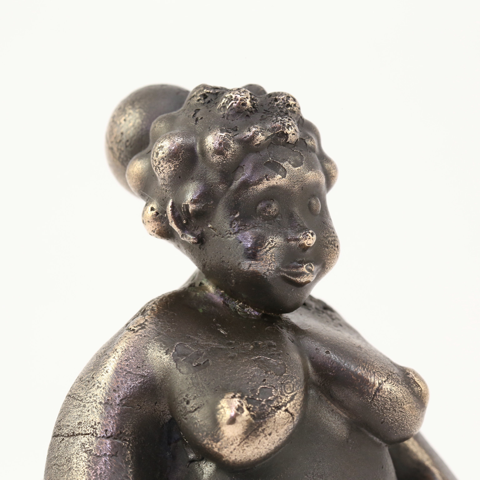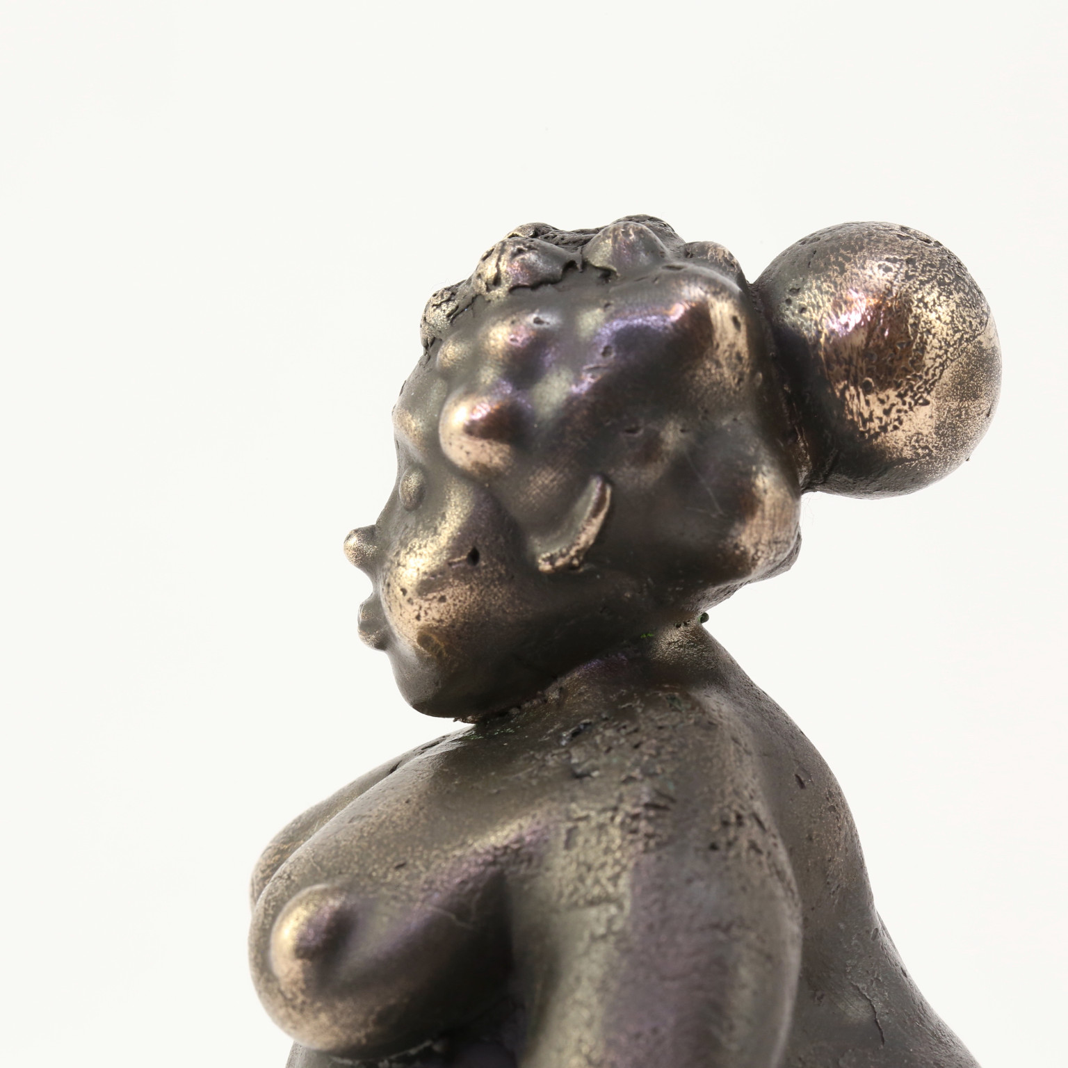 Overfladen på skulpturen er patineret i en smuk mørkebrun farve og blankpoleret på dele af skulpturen.